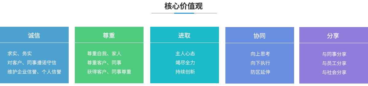 誠信:求實(shí)、務(wù)實(shí),對(duì)客戶、同事遵諾守信,維護(hù)企業(yè)信譽(yù)、個(gè)人信譽(yù)
